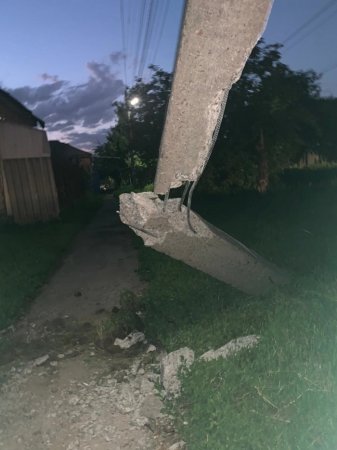 После столкновения машины вылетают с дороги на тротуар. В частности, после аварий 18 июня столб, в который врезался один из автомобилей, треснул. Теперь он грозит упасть на дорогу, тротуар или прямо на дом.