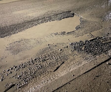 В некоторых местах на дороге образовались глубокие выбоины. Уже несколько водителей лишились колес (ВИДЕО).