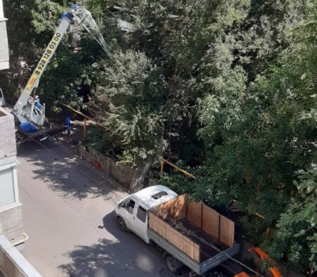 После нашей публикации из пресс-службы городской мэрии в редакцию поступила информация о том, что сегодня-завтра будет произведен спил. И вот, работа по обрезке дерева началась. В подтверждение – фото с работающей техникой подрядной организации УЖКХ.
