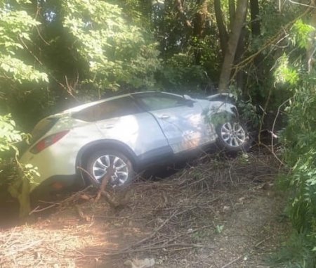 Водитель «Мазды» уходил от столкновения с «Ладой». В результат аварийной ситуации иномарка оказалась в кювете.