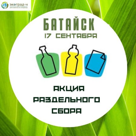 В субботу, 17 сентября, в Батайске пройдет акция раздельного сбора вторсырья. Принять участие сможет любой желающий. Для этого нужно прийти в сквер Авиаторов с 12.00 до 14.00. Об этом сегодня, 14 сентября, сообщил «Экоград-Н» в своем Telegram-канале.