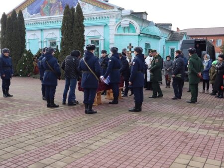 Около 13 часов по погибшему была отслужена панихида. Затем во дворе храма состоялась церемония прощания. Проводить воина в последний путь пришли родные, близкие, друзья, сослуживцы, первые лица города и духовенство.
