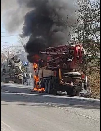 На улице Максима Горького, 703 днем 28 октября сгорел автобетононасос. Со слов очевидцев, бетономешалка тросом отбуксировала машину, и в какой-то момент у бетононасоса лопнуло колесо. После чего и произошло возгорание.