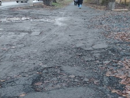 Батайчанка прислала в редакцию фотографии, на которых видно, что пешеходная дорожка от Энгельса до ж/д станции по улице Промышленной находится в ужасном состоянии. Вместо асфальта теперь на этом месте грязь, лужи и куски камней.