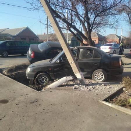 В результате чего автоледи врезалась в стоящий автомобиль «Хендэ Акцент». Из-за чего легковушку с большой силой отбросило в опору ЛЭП. Оба автомобиля оказались в кювете.