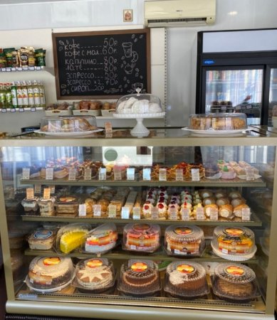 Выбор продукции разнообразен. Среди выпечки на витрине кондитерской традиционные слойки, маффины, кексы, булочки, пирожки, пряники, печенье - всё, что душа желает! А нежнейшие пирожные? Карамельно-ореховое, "Ромео", трубочки с различными видами кремов, бисквиты. Есть торты классические, легкие, заливные, целиком и порционно: "Триумф", "Тирамису", "Шоколадный", "Наполеон"... Вы уже чувствуете этот прекрасный вкус сладкого счастья? А есть еще суфле, безе, десерты. Всё свежайшее и благоухает!