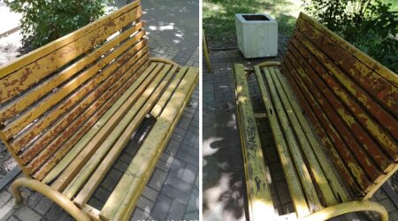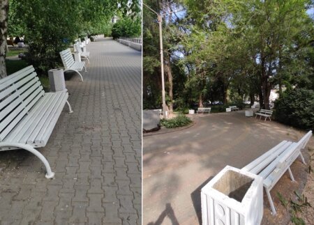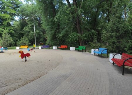 Первоначально скамейки ремонтировались, поскольку контракт не предусматривает их замены, затем поэтапно красились. Первая партия – в привычный для батайчан желтый цвет. А после окончания ремонта фонтана скамьи вокруг оазиса покрыли белой краской, освежили белым и урны. В районе детской площадки в парке – лавки покрасили в разные цвета.