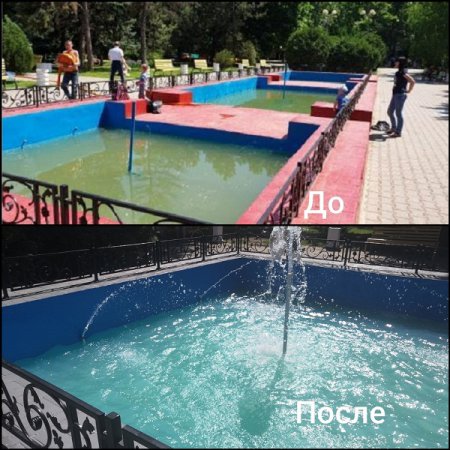 За два месяца было полностью восстановлено оборудование. Рабочие расчистили чаши от мусора, а также вычерпали накопившуюся там грязную воду. Вы можете посмотреть это на видео.