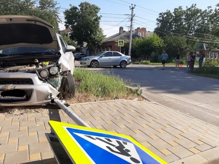 «Шевроле» двигался в попутном направлении. В результате чего, уходя от столкновения, 24-летний батайчанин изменил траекторию движения и съехал с проезжей части на тротуар. И влетел в дорожный знак «Пешеходный переход». В итоге иномарка получила повреждения левой части переднего бампера, а железный столб оказался под машиной.