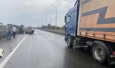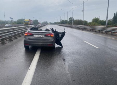 На отрезке трассы А-135 вдоль Батайска легковой автомобиль "Киа Церато" въехал во впереди идущий большегруз "Даф". У легковушки, ехавшей в Краснодар", буквально срезало крышу.