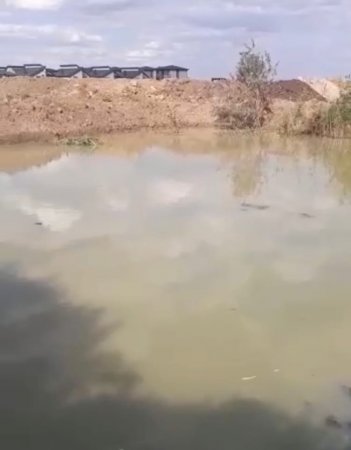 На видео видно, что вода в канале отдает белым цветом, вблизи берега вверх брюхом плавает рыба.