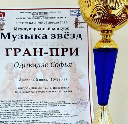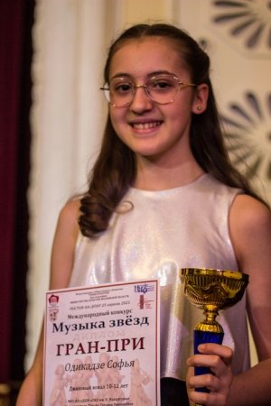 В Ростове-на-Дону, в «Городском Доме Творчества» 25 апреля прошел Международный музыкальный конкурс "Музыка звёзд". Лучшей исполнительницей в номинации «Джазовый вокал» среди детей 10-12 лет стала Софья Одикадзе. Об этом на своей странице в социальной сети рассказала мама школьницы.