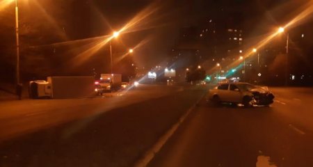 ДТП произошло ночью на проспекте Королева. От сильного удара автофургон перевернулся (ВИДЕО).