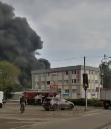 Огонь охватил склад с бутилированной водой на улице Вавилова. Обрушилась крыша. На выезде из «Суворовского» скопилась пробка. Спасатели борются с пламенем (ВИДЕО).