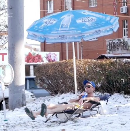 В морозный день блогер из Батайска Иван Сычев решил «позагорать» на лежаке возле торгового центра (ВИДЕО).