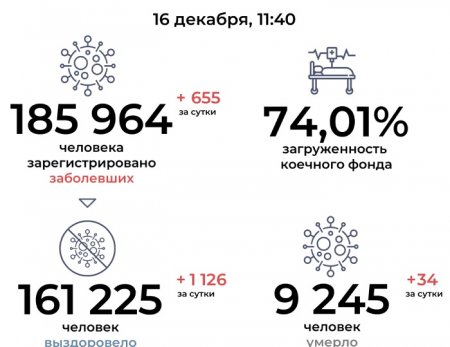 На 16 декабря погибли от коронавируса и его осложнений 9245 жителей Ростовской области. За минувшие сутки болезнь унесла жизни 34 граждан. Среди них 18 женщин в возрасте от 39 до 86 лет и мужчины – от 42 до 76 лет.