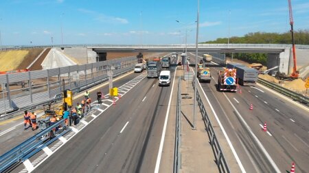 Строительство сооружения началось в декабре 2021 года. Всего за полгода дорожники возвели опоры, смонтировали балки, изготовили монолитную плиту проезжей части. Сейчас готовность объекта составляет 95%: заканчивается установка шумозащитных экранов, окраска конусов и барьерного ограждения. Полностью его планируется сдать в середине 2022 года.