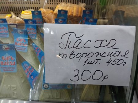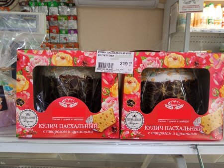 Кстати, в магазинах Батайска можно купить и готовые куличи разных размеров. Самый маленький мы нашли по цене 25 рублей. Большой кулич весом 450 г (выпеченный по оригинальной рецептуре, с цукатами) продается по 220 рублей за штуку. Есть и готовые творожные пасхи - по 300 рублей за 450 г.