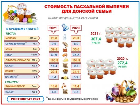 Ростовстат подсчитал, во сколько жителям Ростовской области обойдутся куличи, если их приготовить дома. Информацию о стоимости пасхальной сдобы ведомство опубликовало 30 апреля.