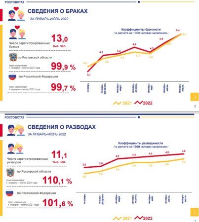 Что касается актов гражданского состояния, то за семь месяцев на 13 тысяч зарегистрировавших отношения пришлось 11 тысяч расторгнувших. При этом статистика за июль 2022 года, которая продемонстрировало дельнейшую убыль населения.