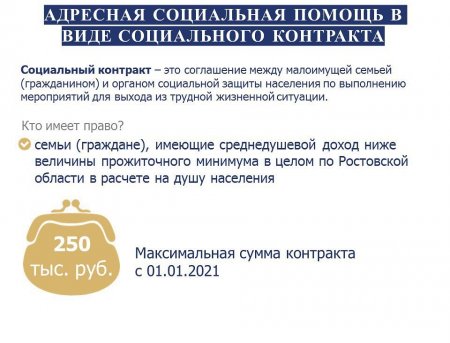 С 1 января на Дону изменится порядок предоставления этой льготы. Жители Дона смогут заключить социальный контракт с властями на 250 тысяч рублей.