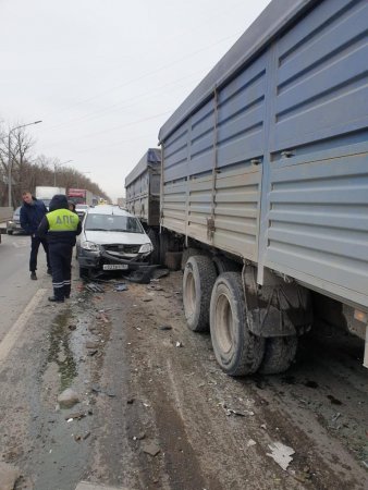 В результате "Камаз" зацепил автомобиль "Лада Ларгус" под управлением 25-летнего водителя, после чего еще и наехал на стоящую на светофоре "Тойоту" под управлением 67-летнего водителя. А тот в свою очередь врезался во впереди стоящий еще один "Камаз".