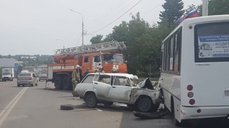 В результате, произошло столкновение с рейсовым автобусом, который ехал по маршруту «ДК Мешковой – терминал п. Первомайский». В салоне находились четверо пассажиров.
