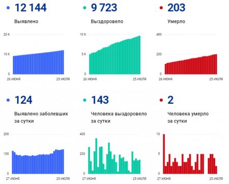 В стационарах области лечатся 785 пациентов. Из них в тяжелом состоянии на аппаратах ИВЛ - 42. Общее число заболевших с момента начала пандемии в Ростовской области достигло 12144 человека. Из них выздоровели 9723 (143 за последние сутки), а 203 умерли (за последние сутки двое).