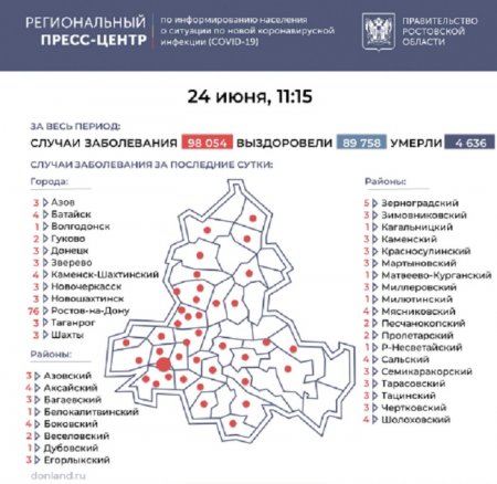 Как уточняет сайт правительства региона, новые больные выявлены в 39 территориях Ростовской области, и, традиционно, максимальное количество зафиксировано в донской столице.