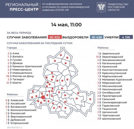 При этом в регионе за сутки ковидом были инфицированы 204 человека. Инфекция былая выявлена в 39 городах и районах региона. Лидерами статистики стали Ростов (78), Шахты (10), Зерноградский (10) район, Батайск (7), Каменск-Шахтинский (6), Азовский район (6).