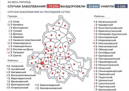 Новые случаи коронавируса зафиксированы в 45 городах и районах региона. В лидерах уже по традиции несколько городов: Ростов (117), Таганрог (14), Батайск (13) и Новочеркасск (13).