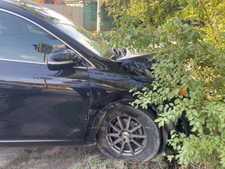 В результате аварии одна из иномарок улетела в кусты, у другой сильно повреждена передняя часть. Пассажирку «Хендэ» 1986 года рождения с травмами отвезли в медучреждение.