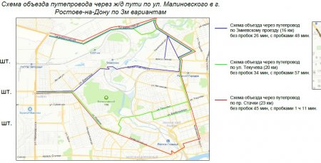 После закрытия существующего путепровода с 4 января 2021 года транспортные потоки будут разделены на три маршрута. В частности, для легковых автомобилей предусмотрено три варианта объезда: по проспекту Стачки, по Змиевскому проезду и по улице Текучева. Для грузового и транзитного транспорта предлагаются объезды через Сальское кольцо, Аксайский и Северный обходы. Таким образом, фурам порекомендовали в город не заезжать вовсе.