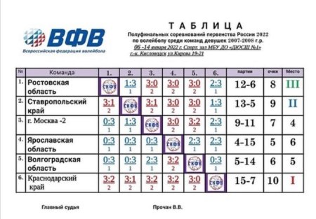 - Соревнования проходили по круговой системе, где команда Ростовской области одержала три победы и потерпела два поражения от сверстниц из Краснодарского (2:3) и Ставропольского края (1:3), - говорится в сообщении.