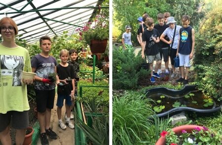 На станции «Теплица» школьники увидели современный стеллаж, используемый для черенкования растений. А водоем, на поверхности которого плавают округлые листья и цветки белой кувшинки – нимфеи, особенно поразили ребят.
