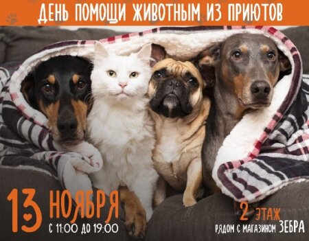 Любителей кошек и собак ждут 13 ноября на благотворительном мероприятии в Мегамаге на Пойменной.