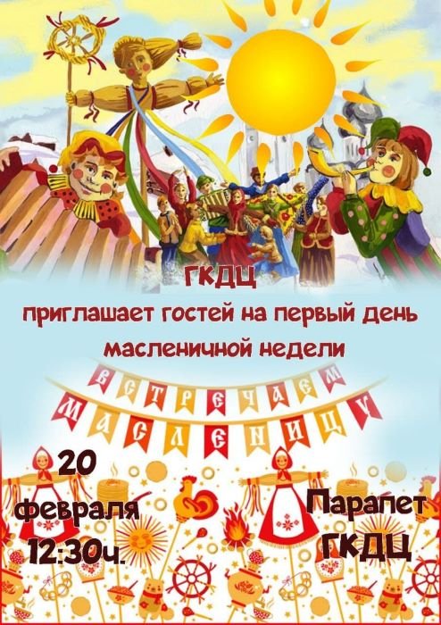 Итак, в понедельник, 20 февраля, в 12.30 батайчан приглашают на парапет городского культурно-досугового центра на пл. Ленина, 5 на открытие масленичной недели "Встречаем Масленицу!"