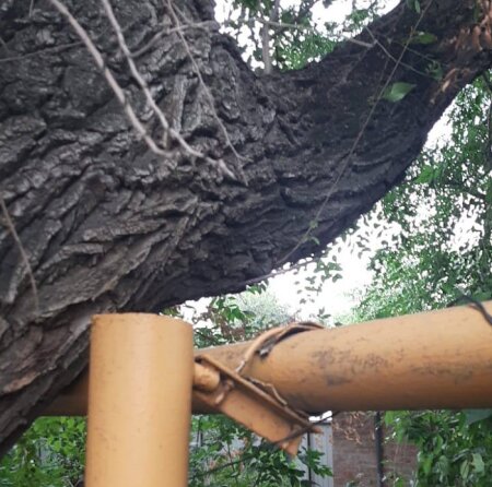 Старое дерево, корни которого уже наполовину над землей, может в любую минуту упасть на газовую трубу. Об этом «Батайскому времени» 18 августа сообщили жители дома №3 по улице Урицкого. Напротив их дома, на переулке Стадионном, как раз и проходит ветка газопровода, которая держит готовое рухнуть огромное дерево. Представляющий опасность объект находится в самом центре Батайска, среди частных и многоквартирных жилых домов. Здесь оживленное автомобильное и пешеходное движение.
