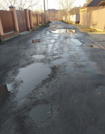 Другая проблема – отсутствие нормальной дороги. На фото, присланных Владимиром Герасимовым, видно, что ямы величиной с футбольный мяч буквально на каждом метре дорожного полотна. Да и полотном эту медвежью тропу сложно назвать – волны и впадины, того и гляди укачает. А, между прочим, на Думенко проживают много пенсионеров и многодетных семей.